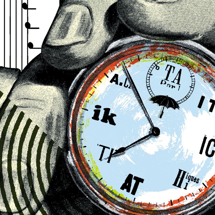 Se eu for gradualmente aumentando a sofisticação do meu relógio baterista, eu posso chegar a uma situação em que o meu repertório de novidades (tititique, taracuntaque, silêncio, titaque…) já é tão grande, e tão presente, que o padrão de base, o tique-taque d’antanho, seja só uma lembrança distante.