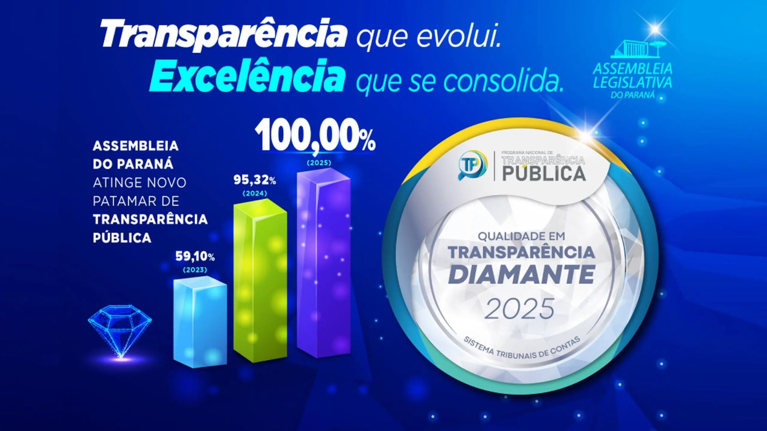 Em 2025, sete Assembleias Legislativas alcançaram o Selo Diamante, mas apenas o Paraná obteve 100%: