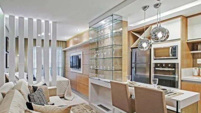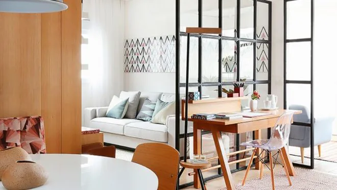 Se precisar dividir o espaço, considere divisórias transparentes, como prateleiras vazadas, para manter a sensação de espaço aberto.