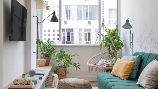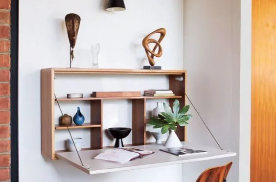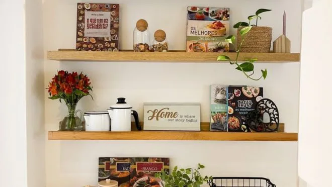 Instale prateleiras flutuantes nas paredes para exibir objetos decorativos e liberar espaço no chão.
