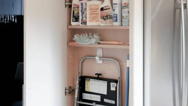 Aproveite ao máximo a altura das paredes com armários e prateleiras que vão do chão ao teto.