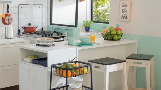 Mesas e cadeiras dobráveis podem ser guardadas quando não estão em uso, liberando espaço valioso.