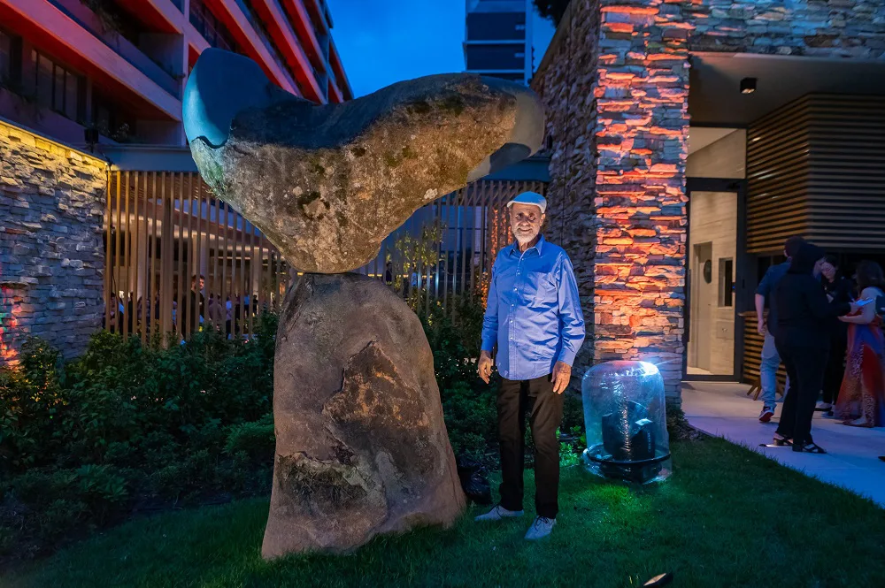 Intitulada ‘sem palavras’, a imponente escultura de Alfi Vivern instalada em frente ao JARDIM é uma obra de arte viva, sensível às nuances do tempo, carregando consigo uma história milenar. “A peça é um basalto de 230 milhões de anos. Eu acho que a pedra tem também uma vida e, sem dúvida, acho que da forma que ela chegou e da forma com que as pessoas receberam ela, está marcando um momento”, afirma o artista.