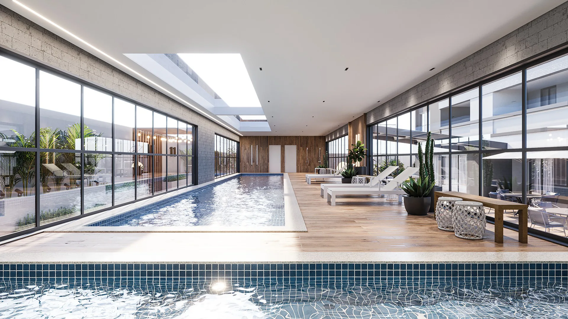 O Terrasse Infini conta ainda com uma completa estrutura de lazer, composta por piscina coberta com deck externo, brinquedoteca, playground, salão de jogos, espaço gourmet/bar, quadra poliesportiva, salões de festa com churrasqueira, além de: