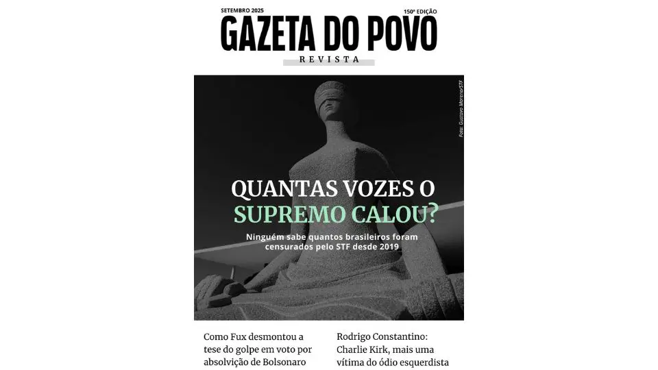 Na sua edição de número 150, a Gazeta do Povo Revista mostra também outro importantíssimo assunto da semana: a condenação do ex-presidente Jair Bolsonaro por tentativa de golpe, entre outras acusações. Nossa reportagem mostra como Luiz Fux, mesmo sendo voto vencido, conseguiu desmontar a tese de tentativa de tomada de poder no Brasil. Baixe a sua e boa leitura!