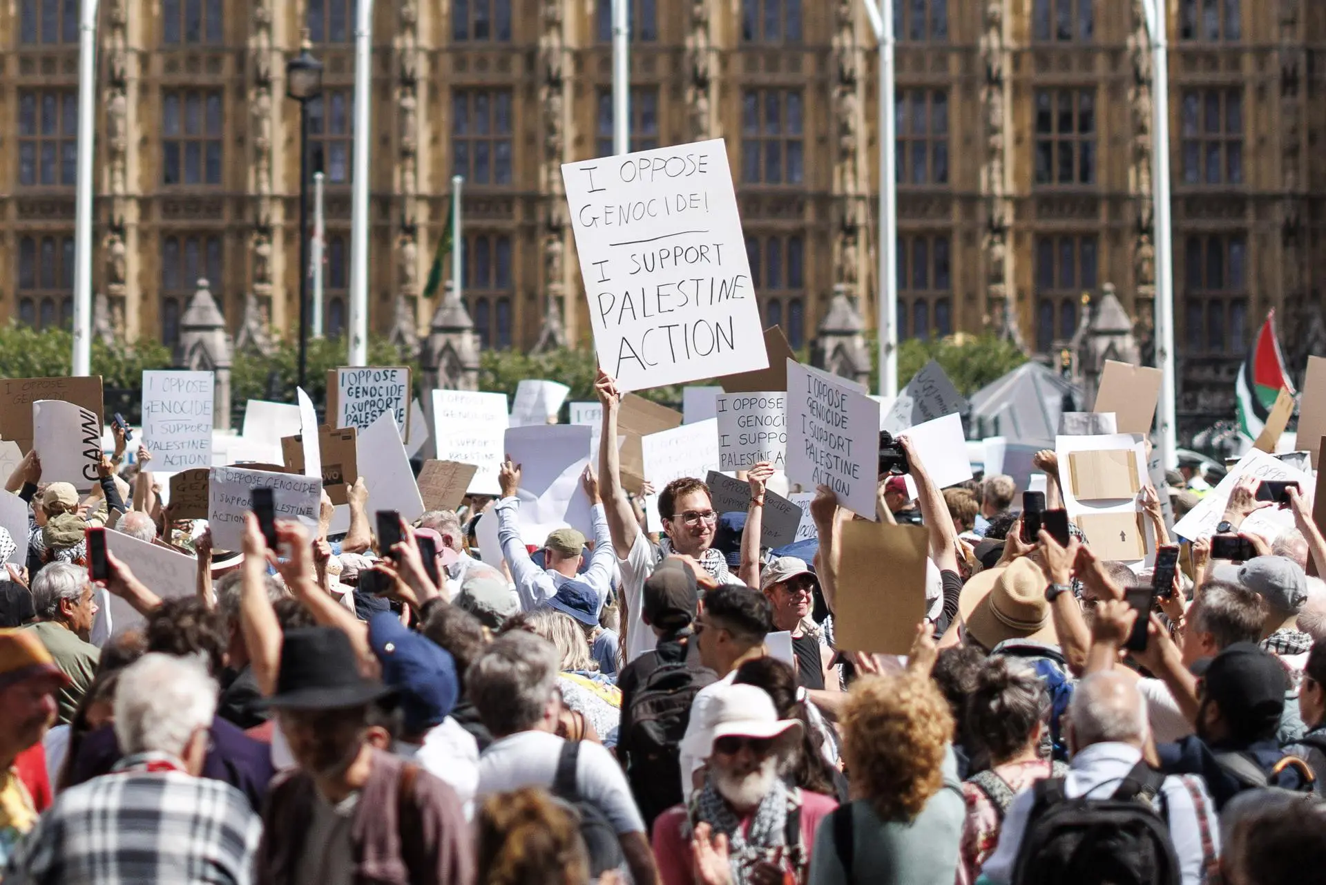 Ao todo, 114 pessoas em Londres já foram indiciadas por apoiar a Ação Palestina, grupo ativista britânico que em julho foi proibido e incluído na lista de organizações terroristas do Reino Unido depois que seus integrantes vandalizaram no mês anterior jatos da Força Aérea Real (RAF, na sigla em inglês) na base de Brize Norton, em Oxfordshire, o que gerou danos de 7 milhões de libras (cerca de R$ 51,6 milhões).