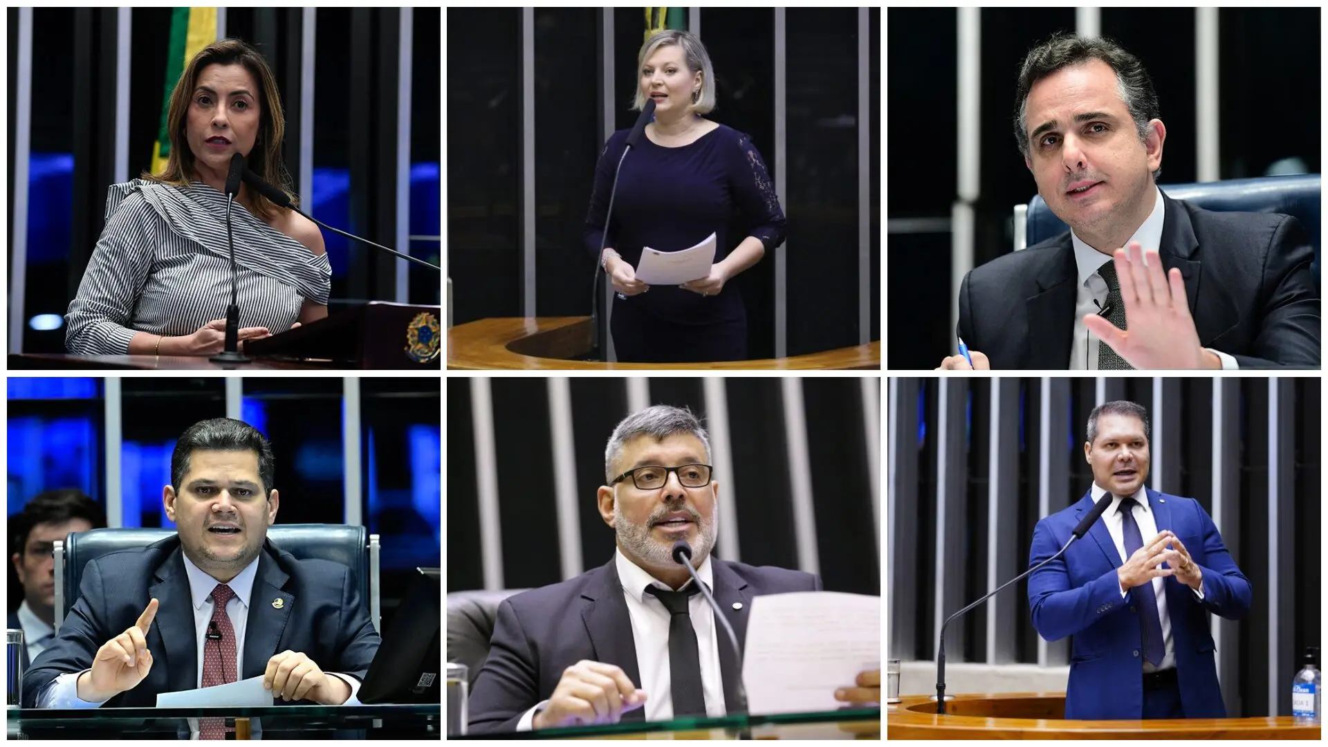 Soraya Thronicke, Joice Hasselmann, Rodrigo Pacheco, Davi Alcolumbre, Alexandre Frota e Heitor Freire são alguns dos parlamentares que abandonaram causas da direita ao longo de seus mandatos. (Foto: Jefferson Rudy/Agência Senado / Pablo Valadares/Câmara / Maryanna Oliveira/Câmara / Michel Jesus/Câmara / Pedro França/Agência Senado / Andressa Anholete/Agência Senado)