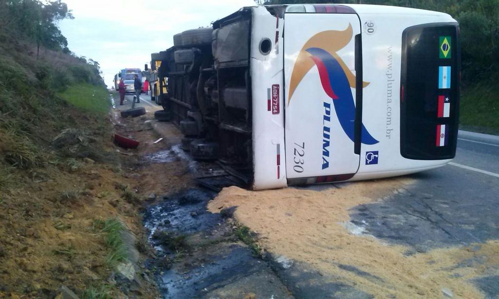Por volta das 4 horas desta segunda-feira (8), um ônibus fretado da empresa Pluma tombou no km 24 da BR-116, em Campina Grande do Sul, na Região Metropolitana de Curitiba (RMC). O motorista do ônibus levava 26 passageiros, todos estudantes da Universidade Federal do Paraná (UFPR) que participaram de um evento na Universidade de Campinas (Unicamp) e voltavam a Curitiba.