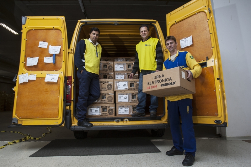 Funcionários dos Correios (foto) estiveram na tarde de ontem no Tribunal Regional Eleitoral (TRE-PR) para preparar o transporte das urnas eletrônicas que serão usadas em Curitiba a saída das urnas do TRE começa às 7 horas de hoje. Segundo a assessoria de imprensa dos Correios, a operação de transporte e distribuição das 5.445 urnas eletrônicas vai envolver 135 empregados e 61 veículos.