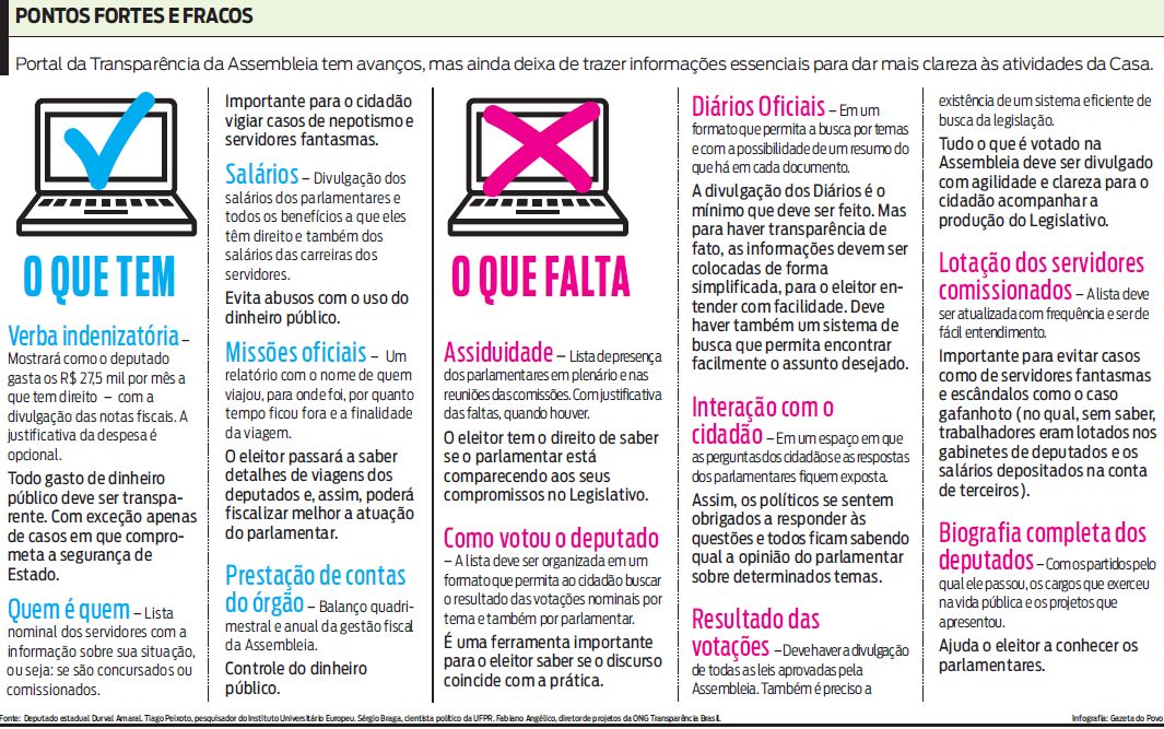 Na avaliação do cientista político Tiago Peixoto, a simples divulgação dos Diários Oficiais na internet em formato PDF seria o mínimo que uma casa legislativa que busca transparência deve fazer. "Seria preciso também ter um serviço para levar uma informação mais mastigada para o cidadão. Um mecanismo de busca para a pessoa encontrar com facilidade o que procura e talvez um resumo do que contém cada documento", comenta Peixoto. "É necessário que as informações sejam disponibilizadas de forma simples e de fácil consulta para todos os cidadãos e contribuintes. Há muito tempo que existem recursos tecnológicos e financeiros para isso", complementa Sérgio Braga.