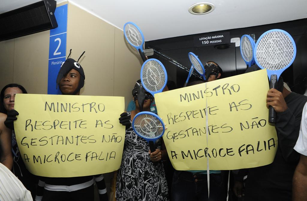 Na porta da sala onde ocorre a escolha do novo líder do PMDB na Câmara, houve protesto contra a presença do ministro da Saúde, Marcelo Castro, que se licenciou do cargo apenas para voltar ao cargo de deputado para poder votar em Leonardo Picciani, candidato apoiado pelo Planalto.